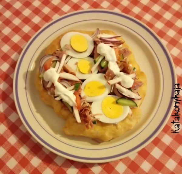 Ma lángost készítettem ezt a receptemet azért szeretem, mert egyszerű. Ha több tésztát készítek, eltehetem a hűtőbe (nem fagyasztó) és bármikor elővehetem akár egy hét múlva is. Nagyon finom lett, tettem rá mindenféle finomságot. Ezt húsvét után is elkészíthetjük, felhasználhatjuk a kimaradt sonkát, tojást. De ha csak magyaros tejfölt (tört fokhagyma, bors, kevés pirospaprika, só) + trappista sajtot teszünk rá úgy is ISTENI.